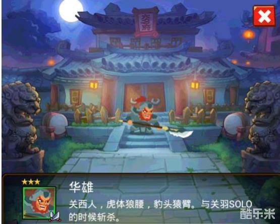 《狂点魏蜀吴》把华雄设定为一个三星级近战英雄,虎背熊腰的纯肉盾,耐抗。
