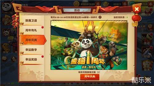 熊猫阿宝迎来一周岁啦!2017年1月8日,《功夫熊猫3》电影官方手游已正式迎来周年庆上线!除魔卫道、周年庆典、幸运数字等多重惊喜福利等你来参与!伙伴元魂、稀有道具、惊喜礼包悉数放送!这个一月,给你满满的惊喜!
