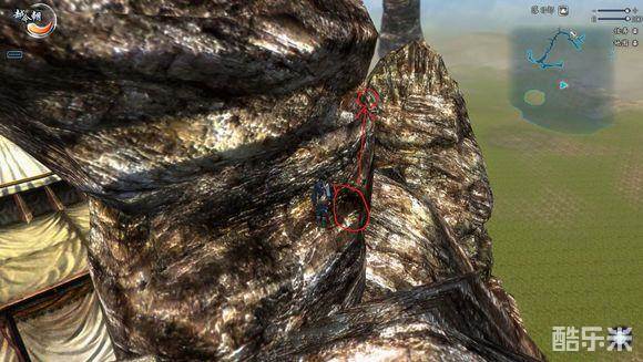 第一步,先从右下角那爬石头爬到我站的这个位置,然后按照箭头顺序往左边走,一直走到下图的那个石头位置。