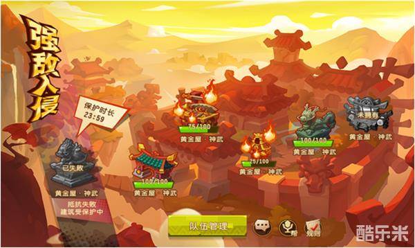在“强敌入侵”御敌过程中,每个被入侵的建筑只能接受一个队伍的挑战,走的是“战斗正未有穷期,老谱还将不断袭用”的路子,别的队伍失败你的队伍就有机会顶上,要想最后获得胜利,最重要的还是队伍实力搭配以及控制、输出、奶妈上的分配。“强敌入侵”组队灵活性和自由性都很强,不怕神一样的对手,就怕猪一样的队友,非常精辟的道出了“强敌入侵”组队的随机性,想要成为被邀请的万人迷,走位风骚、关键时候下大招才会成为帮宠。