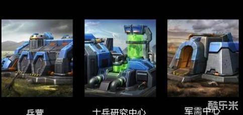 基地是最核心的建筑,决定胜负关键,需要重点保护,可用于存储矿产资源。军需中心用来提升人口上限。建造兵营可生产士兵类单位,解锁士兵科技和高级建筑,解锁战车工厂,士兵研究中心。战车工厂用于生产战车类单位,解锁战车科技和和高级建筑,解锁空指部,光棱塔,战车研究中心。士兵研究中心可用于研究士兵类科技。战车研究中心可研究战车类科技,解锁兵种。