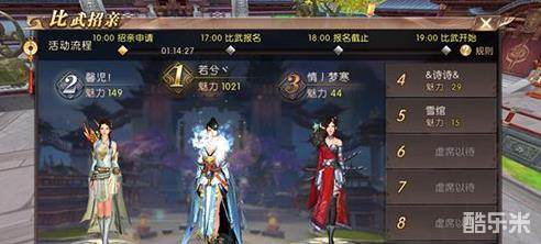 比武招亲的具体玩法,需要女方使用道具——玫瑰,前往轩辕城的红娘处报名。每日魅力第一的玩家可开启擂台,等待有缘者前来迎娶自己。想要抱得美人归的男玩家也需要使用道具玫瑰提前报名,名列前十的天命者才有资格打擂,为红颜而战。