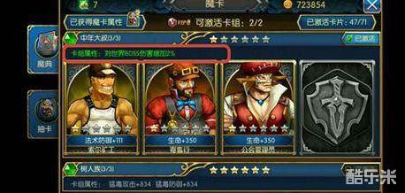 3、魔法,这是小编要说的额重点,魔卡的搭配是能够提升你在BOSS面前的伤害的,就比图说下图这样的卡片组加成都是非常给力的。