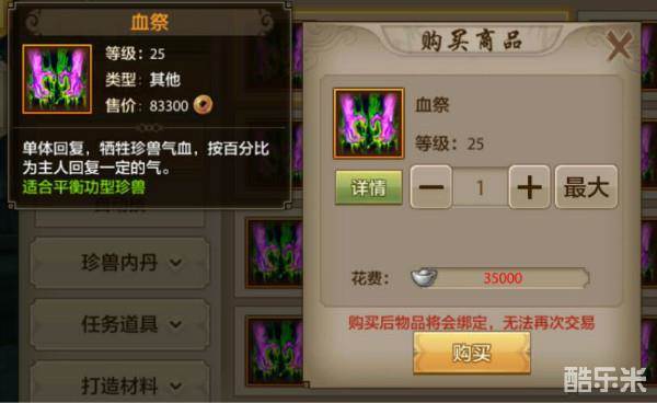血祭和共生一样,都是按照珍兽牺牲气血的数值来进行百分比加成回复。珍兽的气血越多,回复的效果就越好。