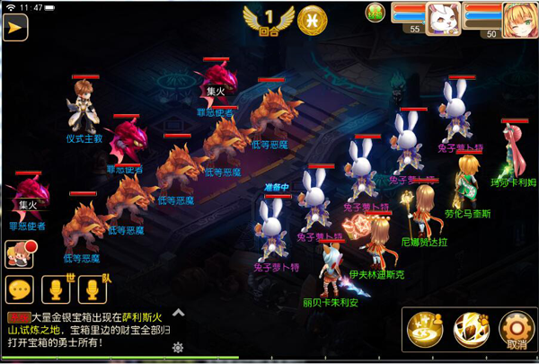 boss关,优先集火中间三只会控制恶魔教士;然后就是会释放恶疾病毒和降低我方治疗强度的恶魔使者;接着就是会群体法攻的地狱疣;剩下的低级恶魔在这个时候估计也没有多血量的了;最后,咱们集火高阶恶魔大领主就可以了。