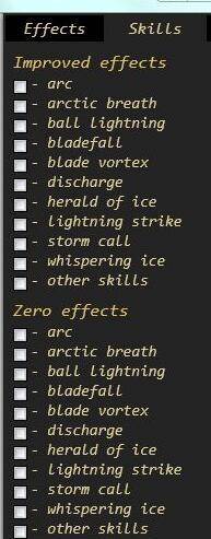 第二大项技能效果不用理,当然你也可以搞一搞,前面一部分Improved是增强技能效果,后面一部分Zero是消除技能效果,如果你要屏蔽什么技能,到百度去搜一搜英文翻译,我试过,屏蔽了刀阵以后施放技能看不到任何圈圈,只有施放动作,但是显示是有刀阵叠加的,看不到圈圈怎么打BOSS呢是不是,所以我没理这一大项