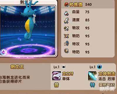我爱皮卡丘刺龙王宠物属性攻略。刺龙王的原型是一个海马,但是不能因为这个而小看刺龙王的实力。我爱皮卡丘中对于刺龙王的设计应该算是比较特别的,因为和他组合的宠物并不是很多,并且它的技能和属性都是十分优秀的,今天小编就来讲解一下。