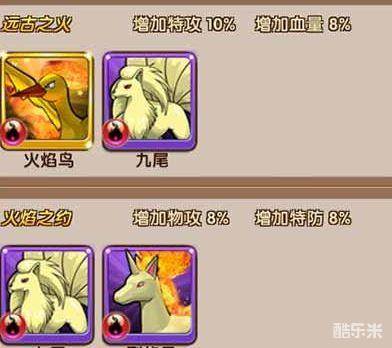 远古之火,和火焰鸟组合,加特攻10%,加血量8%。