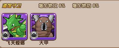 道馆守卫,和飞天螳螂组合,加物攻8%,加物防8%。