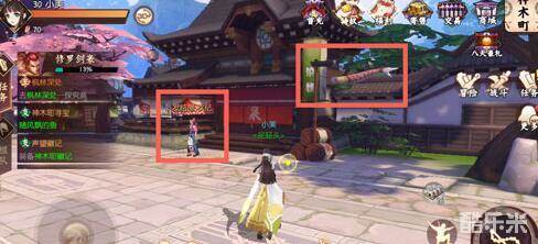 之后,大家再次打开神木町的地图,传送到小编截图标记的地方。当然了,大家可以打开左侧的【人物】-【发结屋 秋纪】,角色会自动进行寻路。