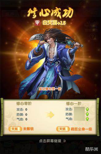 金色弟子自身的资质本就独秀于武林,是难得一见的奇才,因此养成方式也自然与其他弟子有所区别。修心凝神,能够更好的凸显金色弟子真正的强度,亦能增加金色弟子的天赋效果,提升掌门座下战力。在游戏中,掌门主角升为金色品级之后,修心系统便正式开启,而品质为7以上的金色弟子也会开启修心养成。修心共分为七个等级——贪嗔痴恨爱恶欲。掌门消耗一定材料,即可解锁金色弟子的一个修心等级节点,解锁后,该金色弟子便可获得属性加成以及天赋效果。当然,必须完成前一节点的解锁后,才能进行下一节点的解锁。