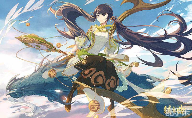 青春靓丽、可爱活泼的御灵小妹妹坐在神龙背上,双眼看着前方,似乎正在奔向中州疾苦之地、为世间众生带去治愈与希望,又似赶赴伙伴相约、在神魔大战的间隙享一段童真趣味。
