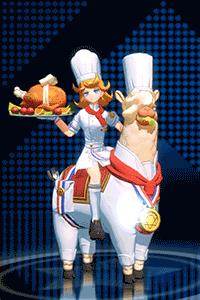 除了标准的厨师职业装,这次美食节有来有去还特别穿上了【皇家大厨】皮肤。红黑相间的制服剪裁贴身,白色裤子和黑色高筒靴点缀着金边,再加上黑色手套和挺立的桶型礼帽,让有来有去举手投足间更显英姿飒爽。此外,羊驼“小鹿”也穿上整套的制式礼仪装,高高厚厚的黑熊皮礼帽更是抢眼。由他们为你服务,真可称得上是皇家级的尊贵体验了!