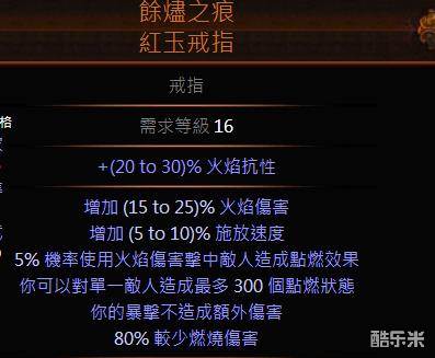 余烬戒指和元素之章一共提供10%几率点燃,天赋中一共提供10%