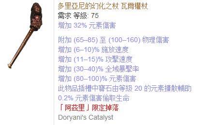 核心绑定珠宝。截图显示错误,实际效果是自身上有诅咒效果增加20%伤害,配合诅咒衣,简直是完美。获取难度特别低,怕国服玩家不知道,这个拿一颗翠绿珠宝瓦掉,很大的概率出,不要上了商人的当,1-5C的货。