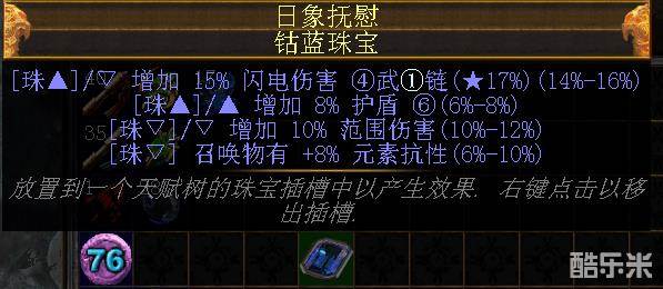 这个属性就相对比较好了,接下来,我们要抉择,一是就这样,目前只追求三条有用的属性,二是想再多加一条属性,那么我们就需要使用崇高石来为这个三属性的珠宝再加一条属性(当然如果使用混沌石或重置点金的方法可以直接获得四属性珠宝),至于出什么属性完全靠运气,如果出一条有用属性就是成功,如果出一条不能用的属性就算失败,属性等同三属性珠宝,但价值不如三属性珠宝了,此方法是珠宝属性进阶一个关键点,土豪珠宝与平民珠宝的一个分水岭。