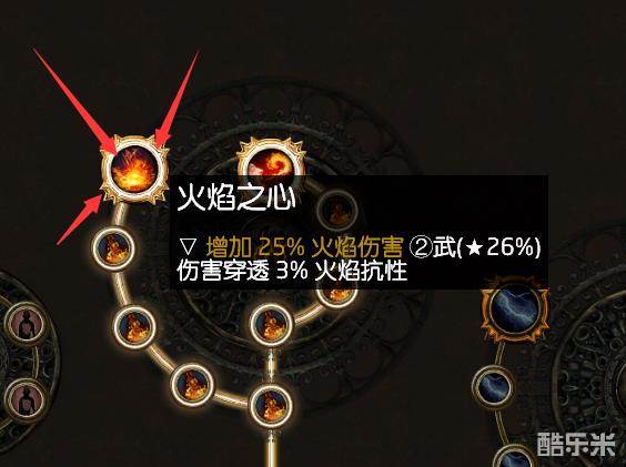【火焰之心,雷霆之心,冰霜之心,自带穿透%3,法系最爱。旁边的大点是异常状态持续时间和几率也值得你考虑】