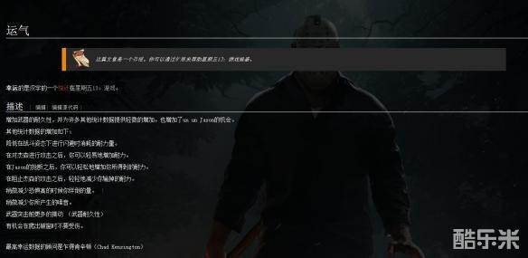 十三号星期五游戏中每个人类都有不同属性,其中幸运值有什么用?很多玩家知道的不多,下面给大家带来了“xiaokl89”分享的十三号星期五幸运属性作用介绍,一起来看下吧。