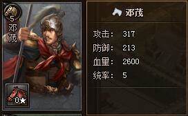 铁骑冲锋游戏中邓茂怎么样厉害吗?下面小编就为大家介绍下游戏中邓茂的属性数据。