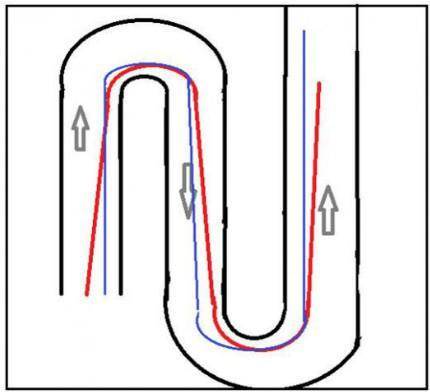 蓝色线,顺势漂移,很多赛王视频里都会出现的一种过弯方法;