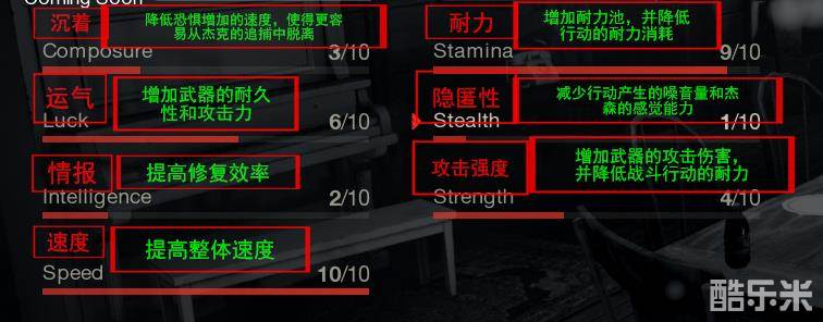 低调潜行:增加15%更快的蹲下行走速度和50%的机会避免屠夫感知。