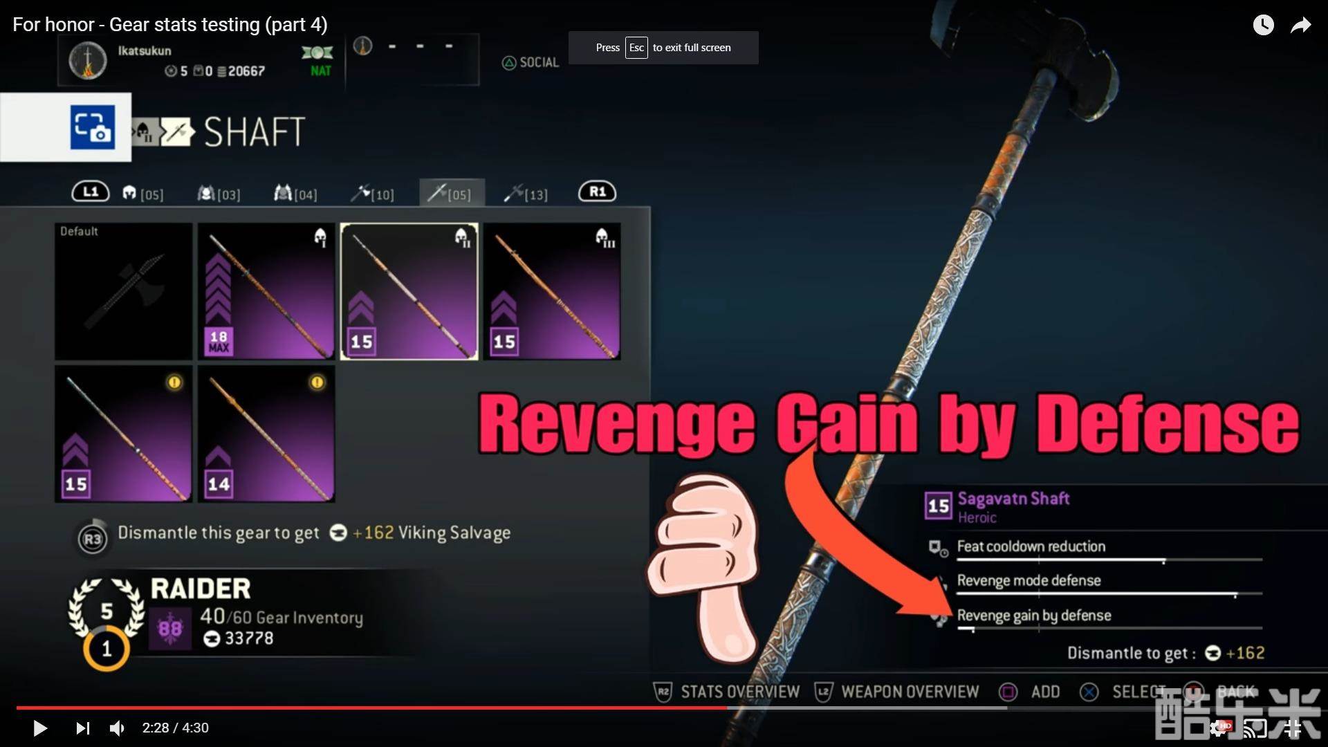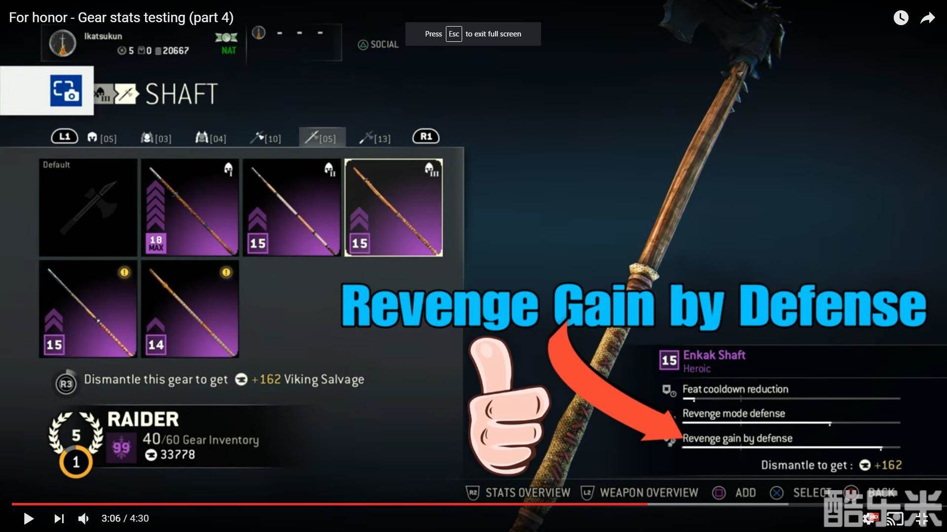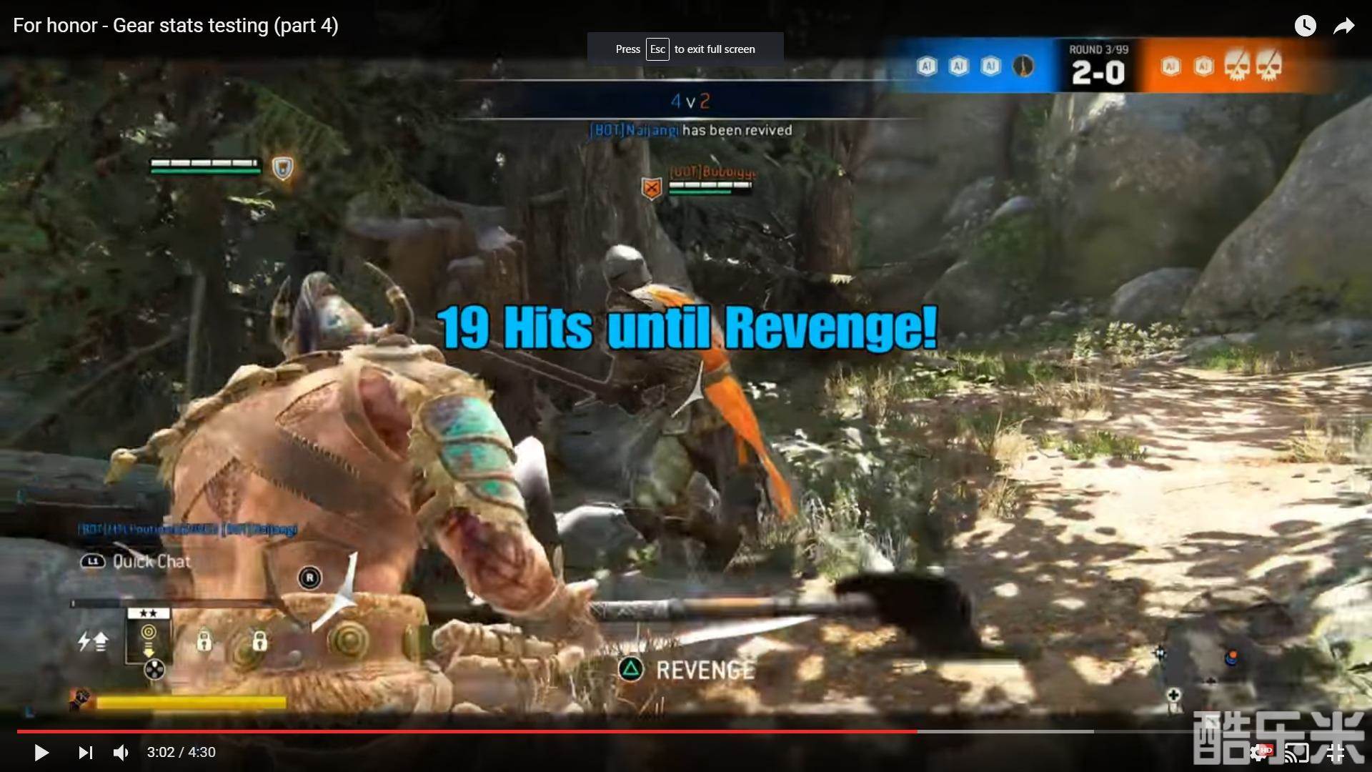 高数值装备在连续格挡11次攻击后复仇值加满。