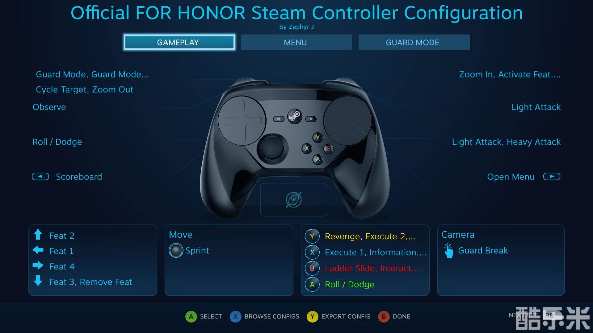在浏览配置里第一栏能看到官方的控制器配置方案,一个是正常版,一个是体感控制防御方向(纯属休闲-_-!)
