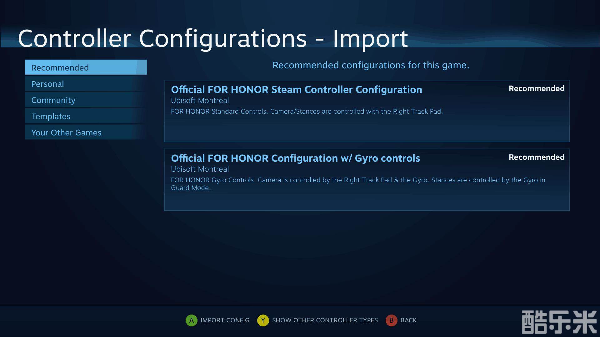 连上手柄,打开steam的大屏幕模式,在controller settings(控制器设置)下勾选XBOX support或ps4 support,重启客户端大屏模式的图例就会变成XBOX的或者ps4的。接着进在游戏开始的底下管理游戏那里选控制器设置,为for honor 单独配置控制器。