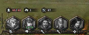 上图为远征后的效果截图,当登场47个自身士兵后,出场的马超攻击力增加47%。