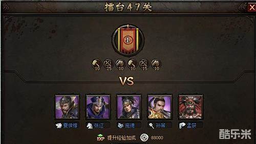 过47关的配置和46关相同:宝石88776,四紫将+孟获(孙策已觉醒),宝物5个黄1和1个绿1,兵法减怒2级击杀满级。