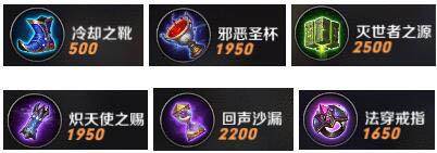 冷却之靴,邪恶圣杯,灭世者之源,炽天使之赐,回声沙漏,法穿戒指