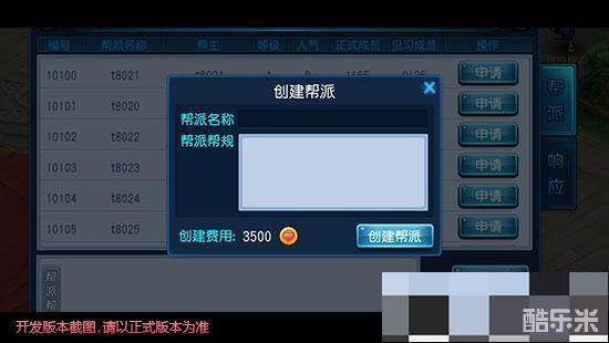2、选择指定申请输入申请信息后,只有自己选择申请的帮派才能收到申请入帮信息。