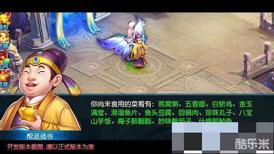 每周可开启两次帮派宴会,帮派师爷会随机指定玩家进行一些宴会小玩法进行娱乐,每次小玩法结束后可随机获得十二道风味中的一种,食用后获得经验和帮贡奖励,多余的可以分享至帮派频道,若是吃完12道食物则可以获得取十二风味礼包。帮派宴会可获得大量帮贡。