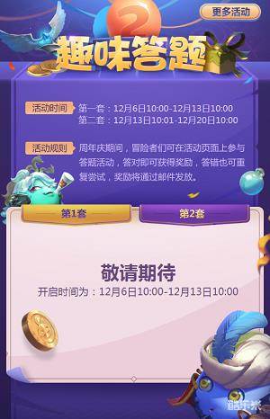在游戏地图下方的活动专区可以进入二周年趣味答题页面,答对5道有关冈布奥的问题就可以获赠金罐、冈布奥碎片等奖励。