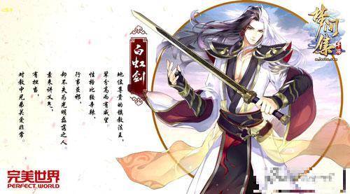 白虹剑是《梦间集》最新登场的角色,作为地位尊贵的镇教法王,辈分高而有威望。他性格比较辛辣,行事虽邪,却不失为光明磊落之人。素来讲义气,有担当,对教中兄弟关爱非常,经常仗义相助。他的声音由中国CV谢添天和日本CV新垣樽助倾情演绎,寻梦人将在这里感受快意江湖的万丈豪情。
