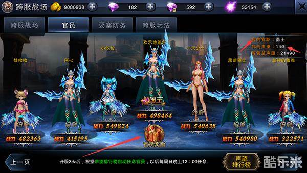 在跨服战场-官员就能看到自己的声望还有官职,以及阵营总声望。