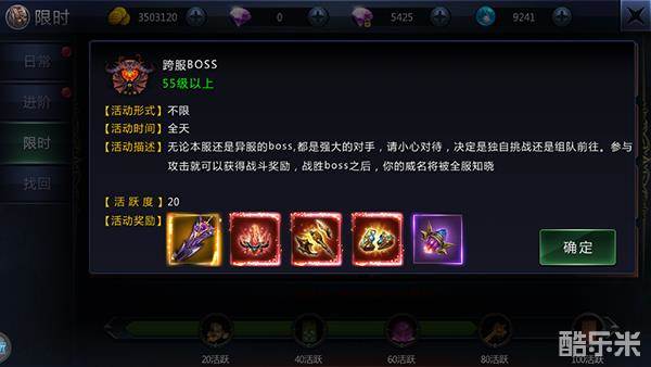 日常玩法中,我们可以在跨服boss战中,获得大量珍稀装备。可以组队或者单刷跨服boss.组队过程中,只要获得珍稀装备,可以在队伍中丢筛子决定装备归属。公平合理。只要参与攻击boss,就有参与礼包可以领取,奖励丰厚。