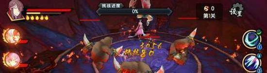 五灵属性地图又分为以下几种:两关小怪最后BOSS的、一关小怪一关纯机关最后BOSS的,最后BOSS又分直接秒掉过关和打够100点数值过关两种。我这个地图就是火属性两关小怪BOSS打100点通关那种。遇到周围机关比较多的躲到角落放风筝就好,每次到下关前蓄力够5灵力方便放技能。