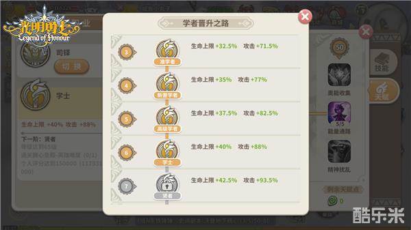 除天赋、技能、手法外,强大的属性也是打出爆炸输出的重要条件之一。成为学者后,游戏中的专精进阶系统会自动开放,萌主能根据当前的职业专精获得生命上限和攻击的加成。达成等级、个人评分、通关副本等条件,都有可能解锁更加高级的专精。从准学者到贤者,萌主不仅能得到属性更加强力的角色,还能收获一段丰富多彩的游戏经历。