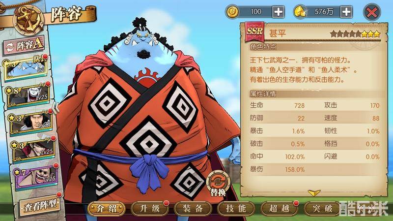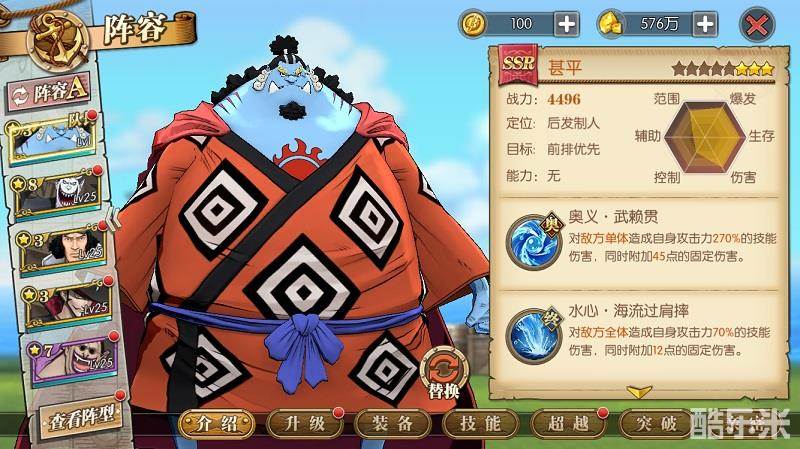 总体看来,甚平是目前的坦克类角色中输出比较高的,能同时兼顾这两点挺不容易的额,好好培养一下基本可以替换赤犬、莫利亚。
