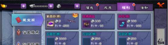 在藏宝阁中可以用仙盟贡献来换取珍贵道具。