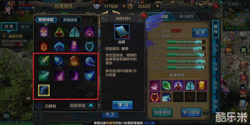 合出自己满意的战魂后,就只能通过技能书开启技能格子。技能书分为普通技能书和强效技能书,两种技能书都能达到开启技能数的目的。