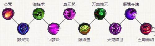 夺魂咒:蛊师的高级攻击技能,仍然是单体攻击,但是多了吸血的效果。有了这个技能之后蛊师的生存能力会大大提升,足以和强敌正面对决而不落下风。