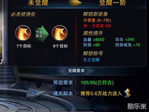 到角色到达105级,点击游戏界面左下方箭头,就能看到觉醒的锁已经解开,但这不代表人物已经开启神力觉醒哟,你还得达到另外一个条件!