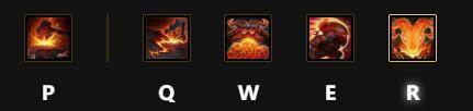 奥恩获得一个护盾,全身喷火,并进入不可阻挡状态。火焰会按照敌人当前的生命值造成百分比的魔法伤害。被技能结束前的火焰命中的敌人会变成易碎状态。奥恩的普通攻击会击退易碎的目标。