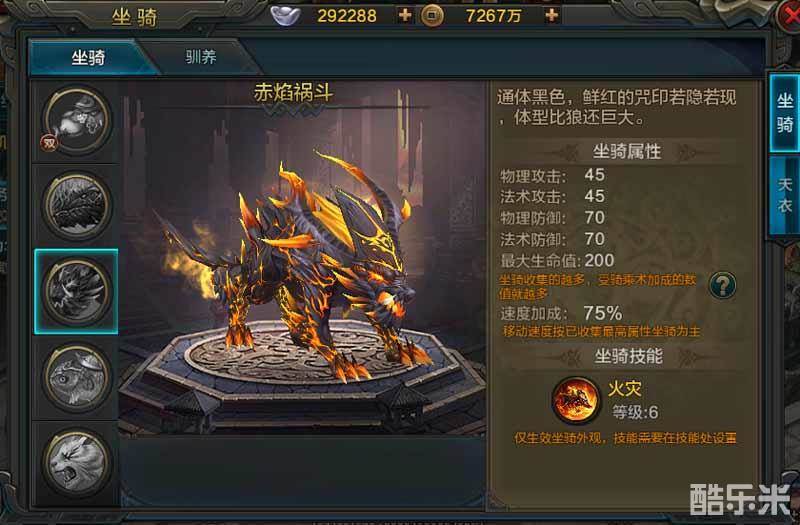 最后编辑于6年前《QQ华夏》手游第五部资料片异兽传说登场后,可以对坐骑进行驯养和异兽志培养,同时新增昆仑虚副本,在昆仑虚副本不仅可以获得坐骑驯养材料,而且还有冰霜祸斗和炽焰祸斗两只全新坐骑碎片的掉落。使用30个碎片即可合成一只坐骑,那么这两只祸斗都有怎样的特点呢,让我们来介绍一下。