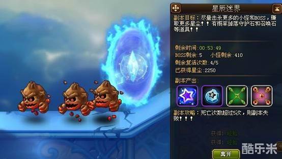 大家每天可以进入星辰迷界副本一次,击杀小怪和BOSS可以赚取星尘,也有一定机会掉落守护石和召唤石等道具!据说星辰迷界副本多达五波怪物五个BOSS哦,不过不用怕,副本里也有五次的复活机会,涅槃再生,越挫越勇!勇士们拿起手中武器向前冲吧!