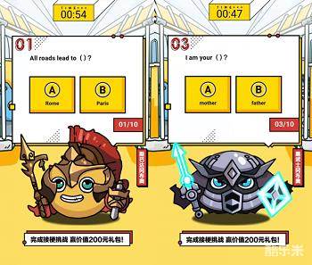在60秒的时间内答对全部问题即可获得游戏大礼包