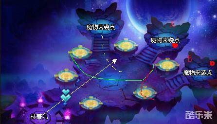 地图上我标示了A、B 两个点;单人的副本只有A点是出怪点;而B点是用来卡怪的,如何卡怪?这个B点就是关键。请认真的继续看下去!