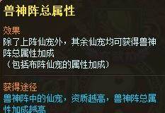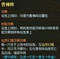 b)调整属性加成规则,兽神阵中的宠物总属性加成可以给身上携带的所有宠物加成(包括附身宠、休息宠、出战宠),同时还可以给所有布阵宠物加成属性(包括正式上场与替补上场的布阵宠物);